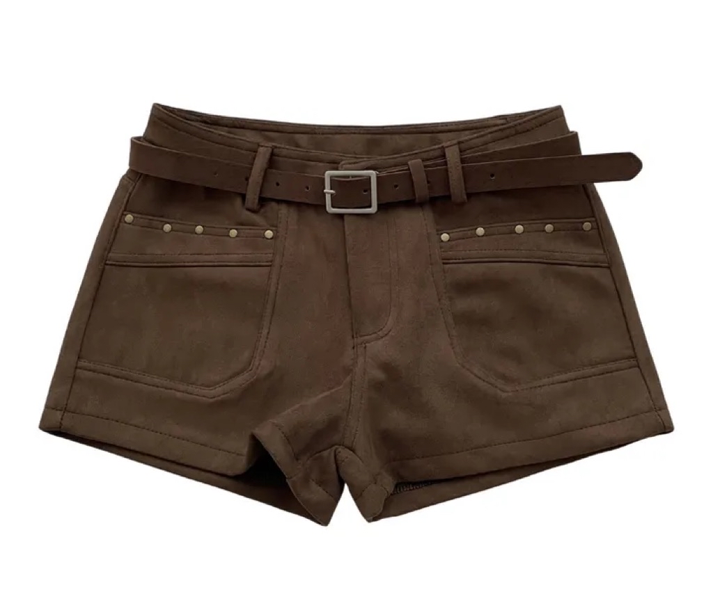 MO🇰🇷 韓國東大門代購 正韓 韓國代購 卯釘設計麂皮短褲(附皮帶)預購