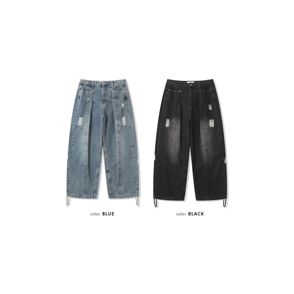 MO🇰🇷 韓國東大門代購 正韓 韓國製 韓國代購 男女同款🔥 褲管抽繩水洗牛仔褲 預購