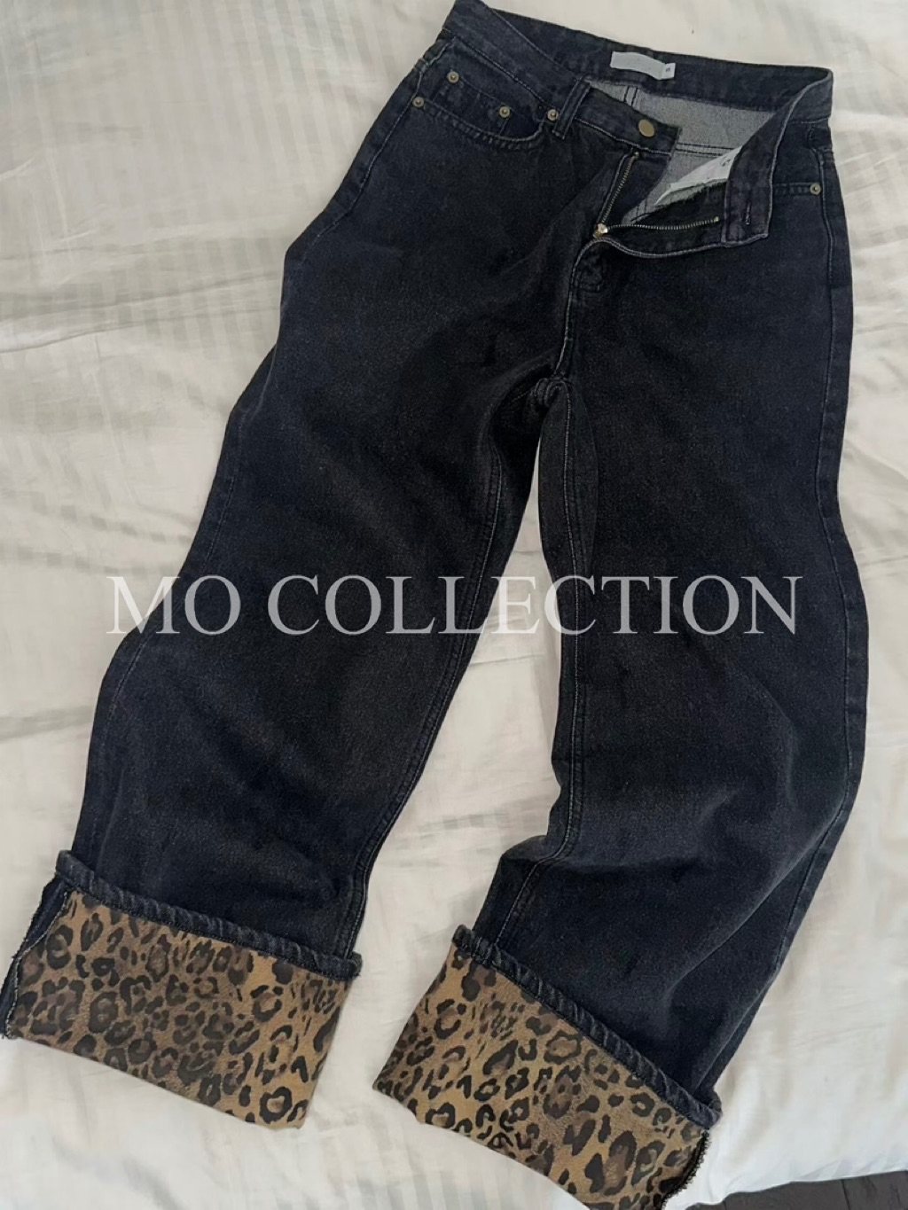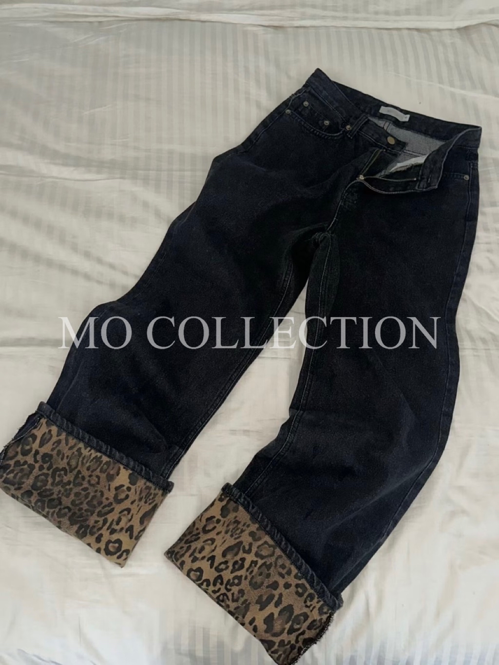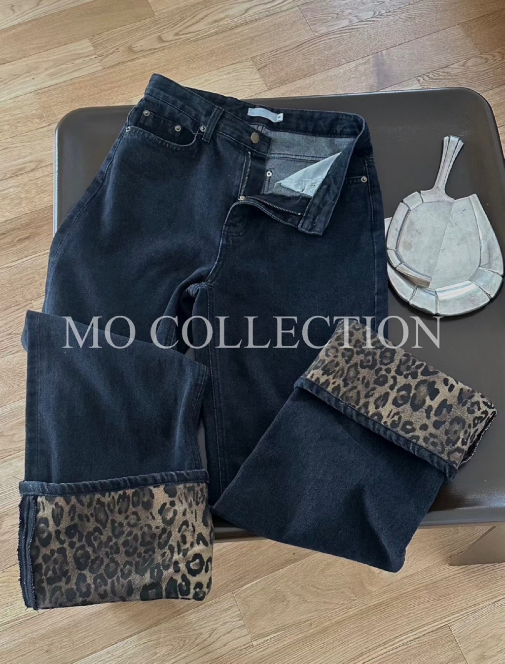 MO🇰🇷 韓國東大門代購 正韓 韓國製 韓國代購 豹紋反折牛仔褲 預購
