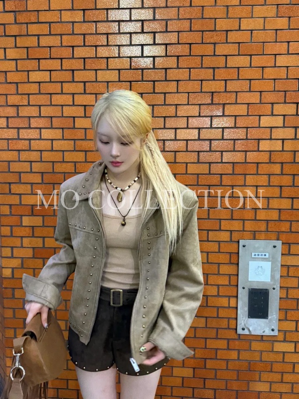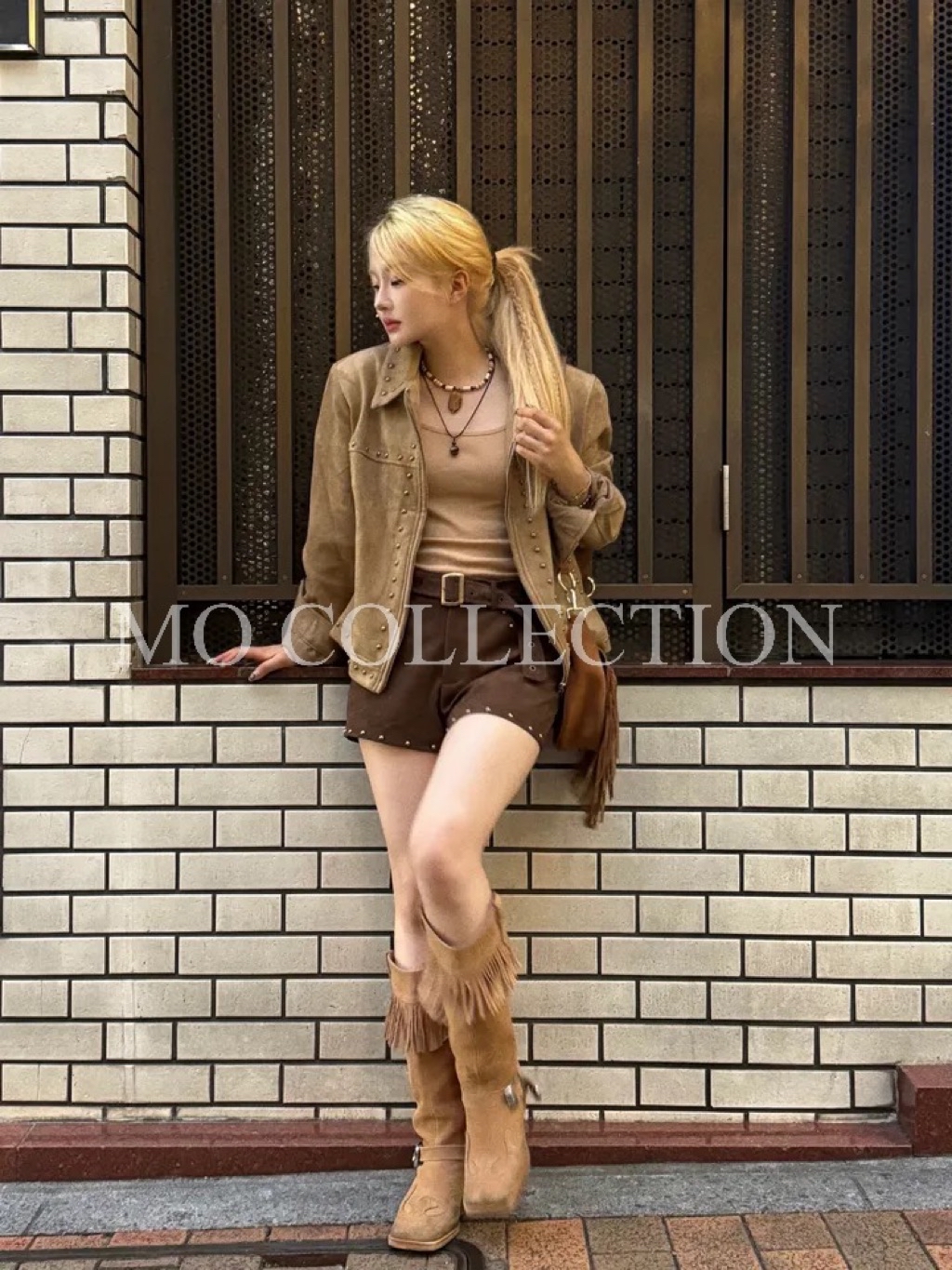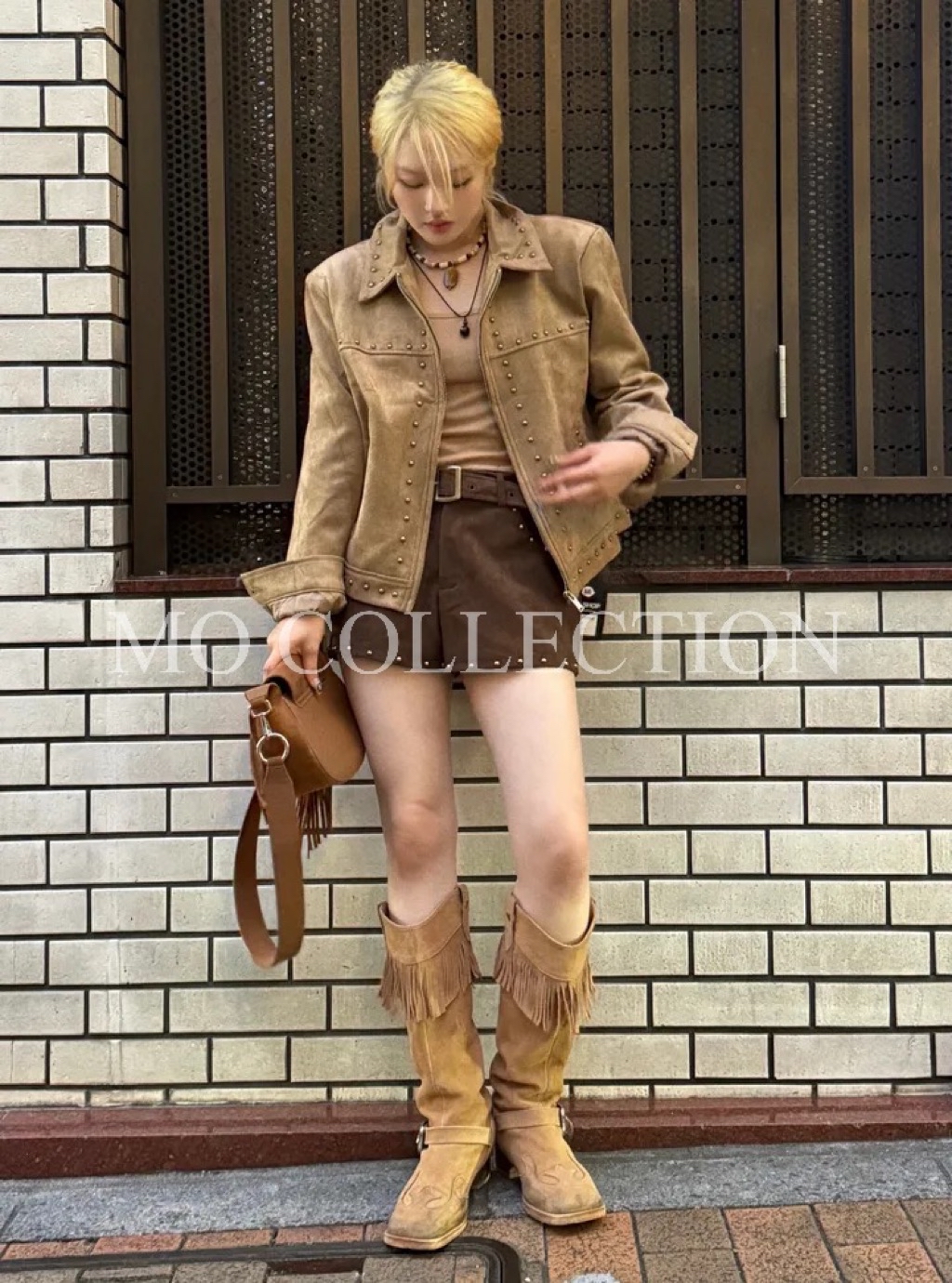 MO🇰🇷 韓國東大門代購 韓國代購 麂皮卯釘外套 麂皮卯釘腰帶短褲 預購