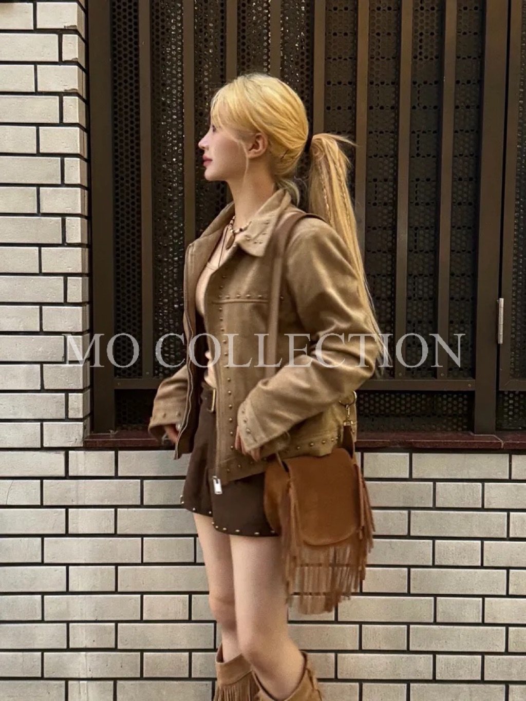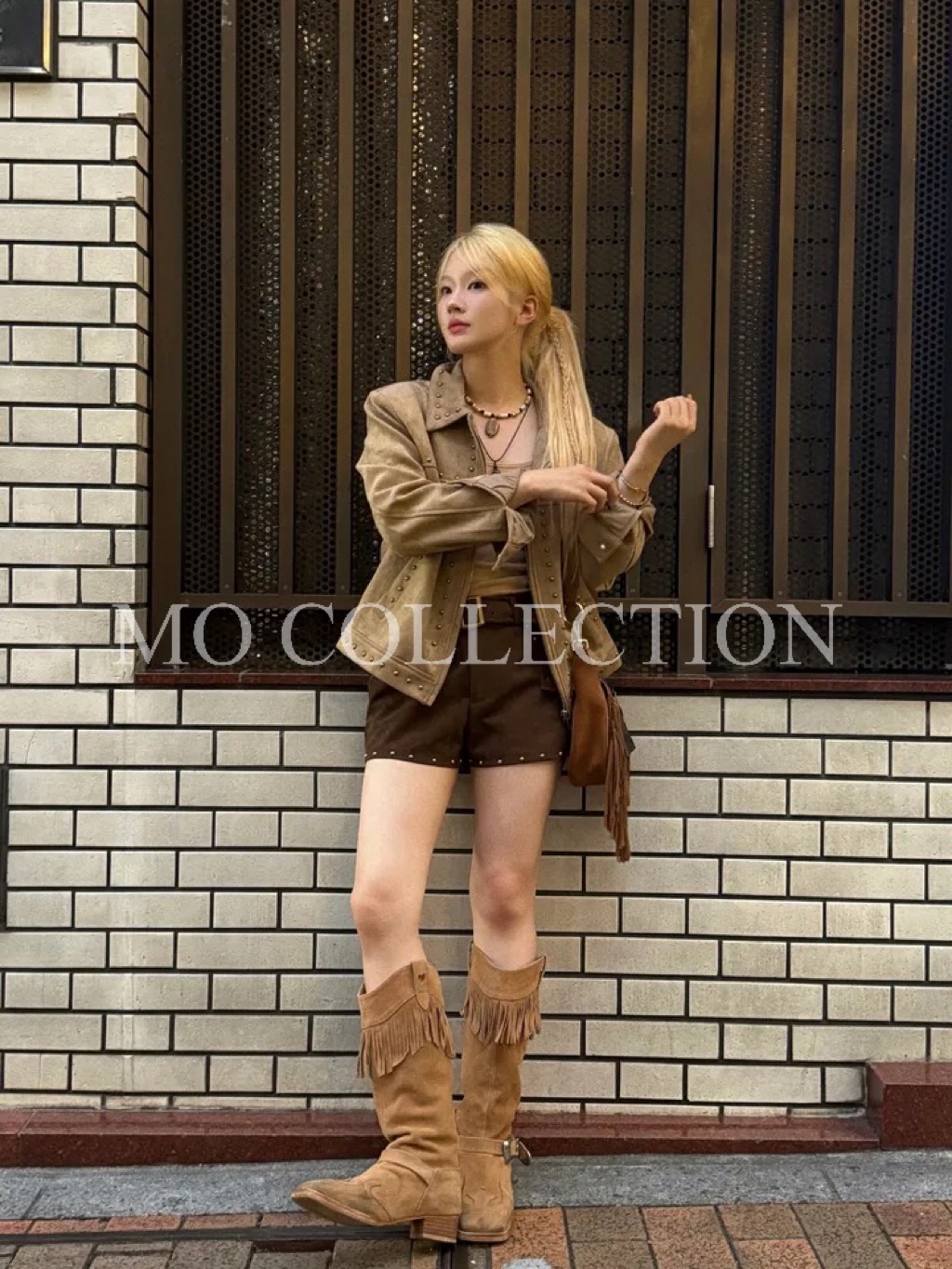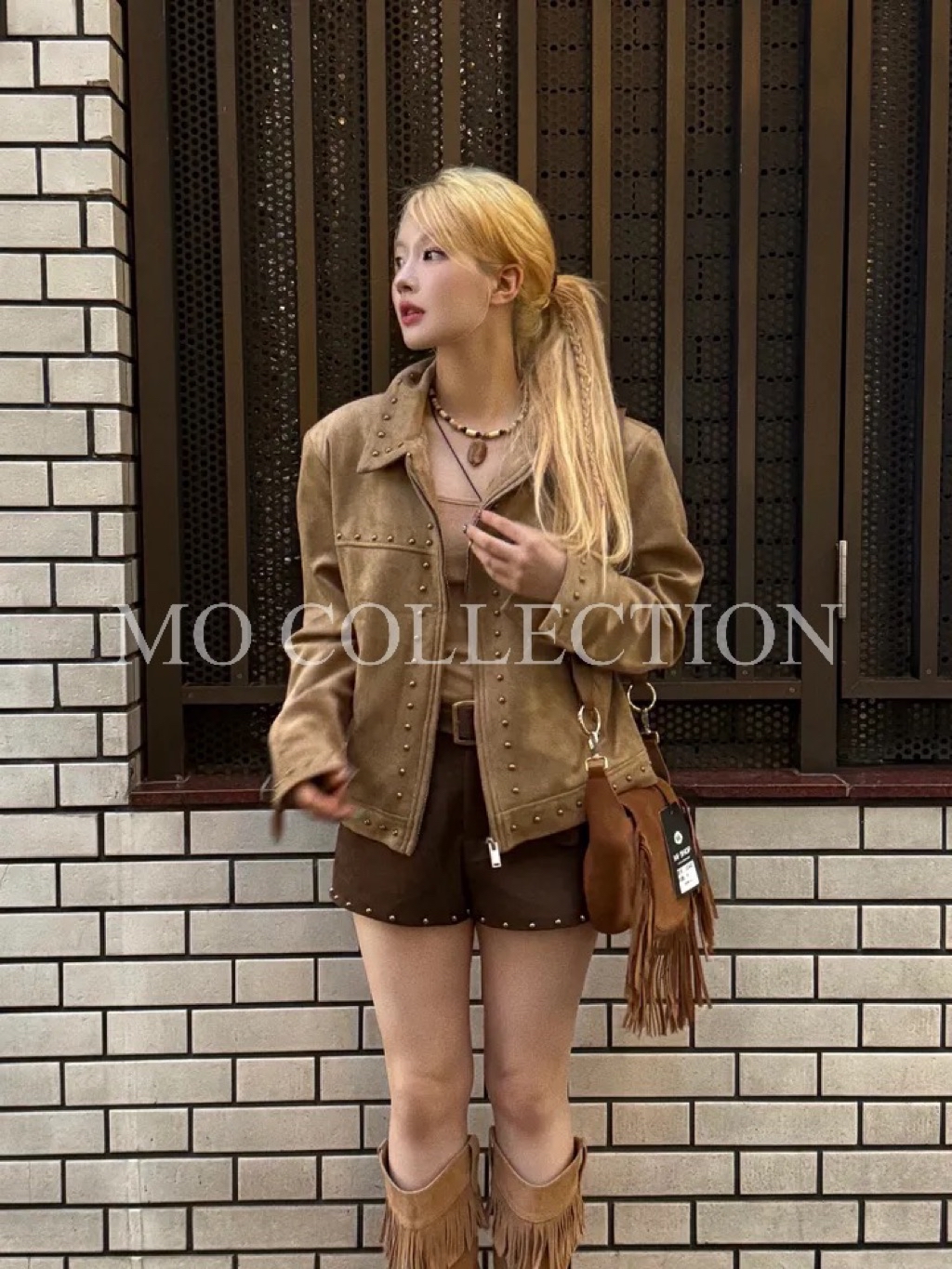 MO🇰🇷 韓國東大門代購 韓國代購 麂皮卯釘外套 麂皮卯釘腰帶短褲 預購