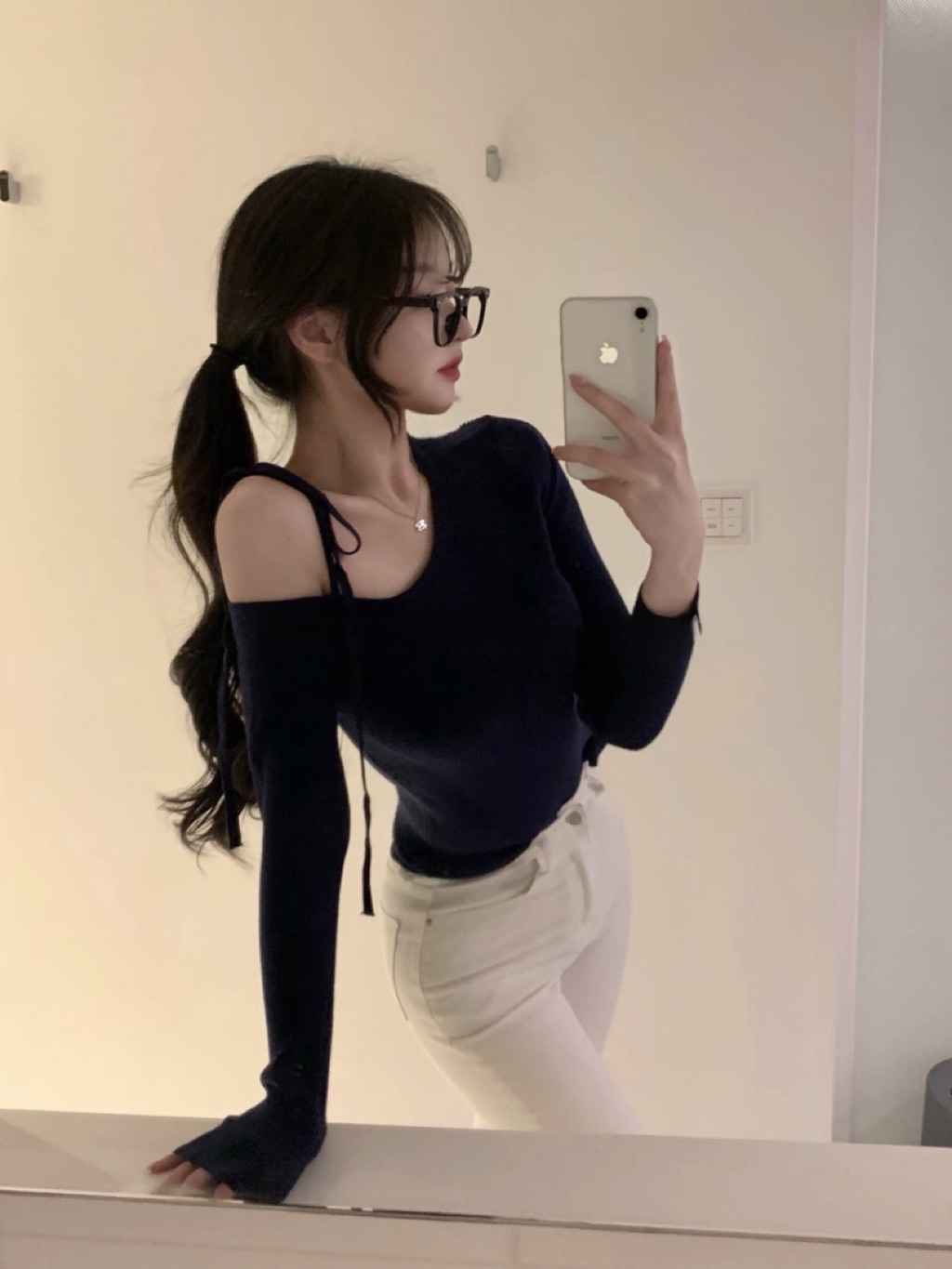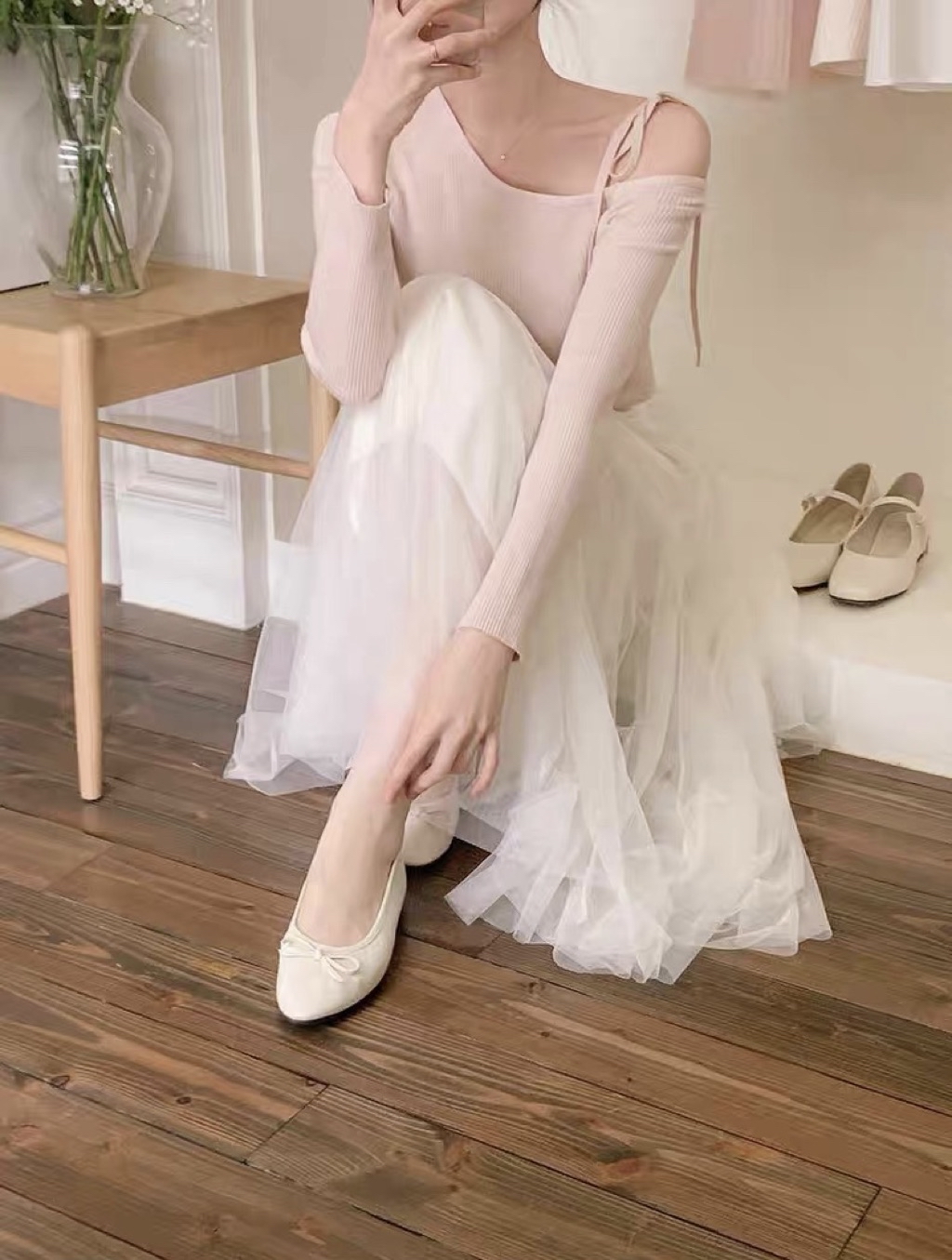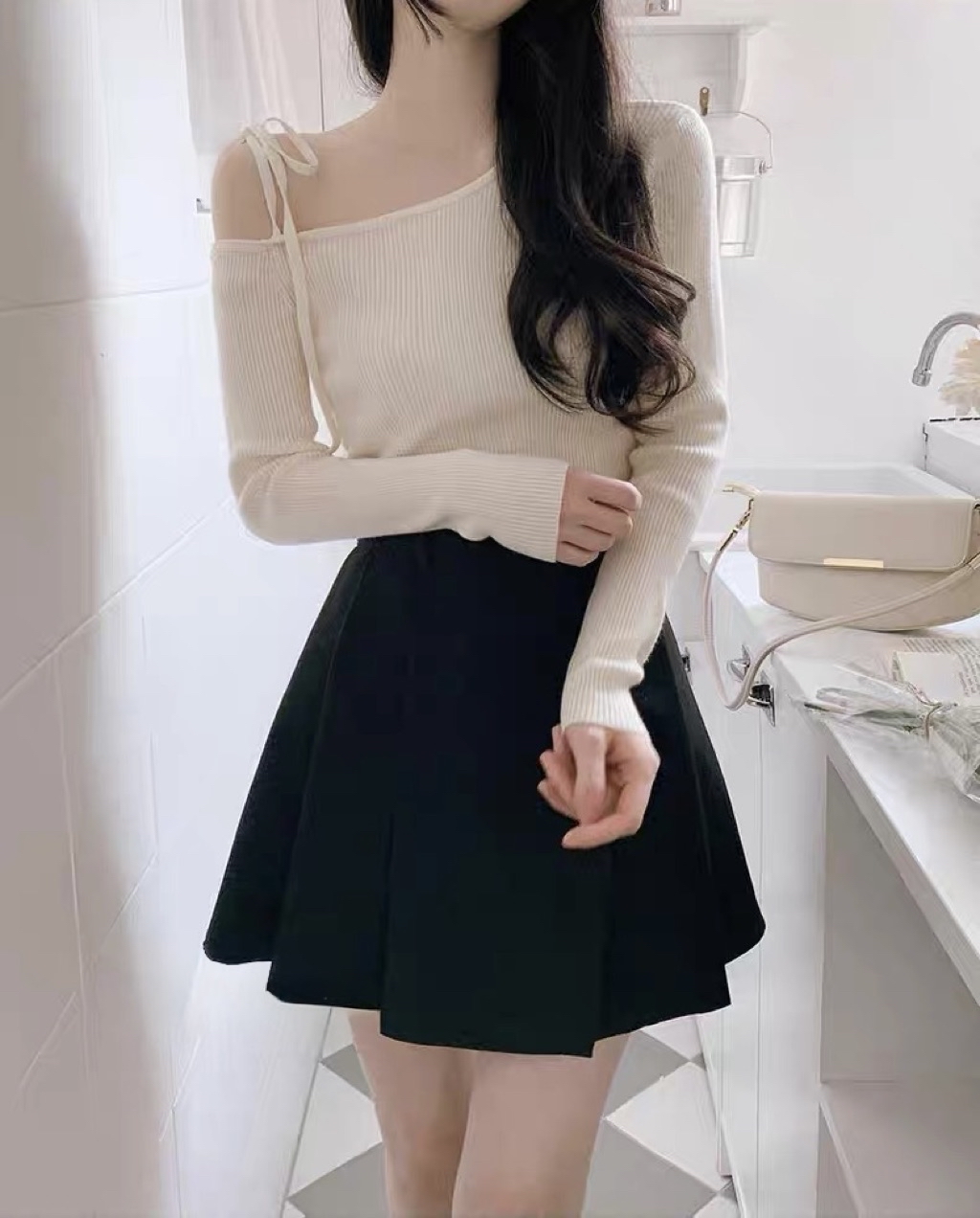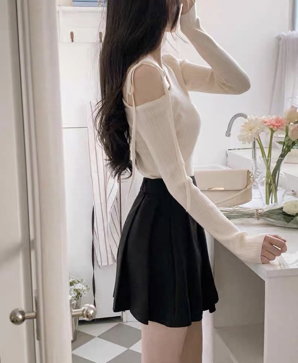 MO🇰🇷 韓國東大門代購 正韓 韓國製 韓國代購 日常溫柔 露肩綁帶直坑條長袖上衣 六色 預購