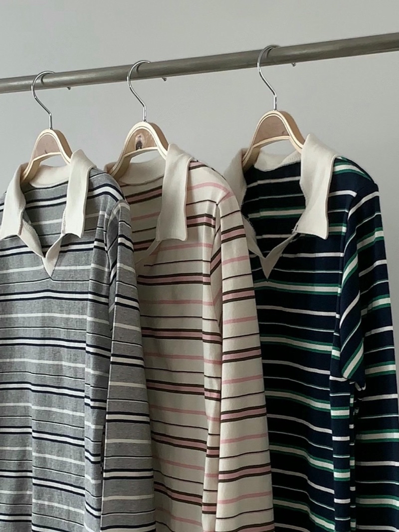 MO🇰🇷 韓國東大門代購 正韓 韓國製 韓國代購 甜美條紋polo衫 上衣 預購