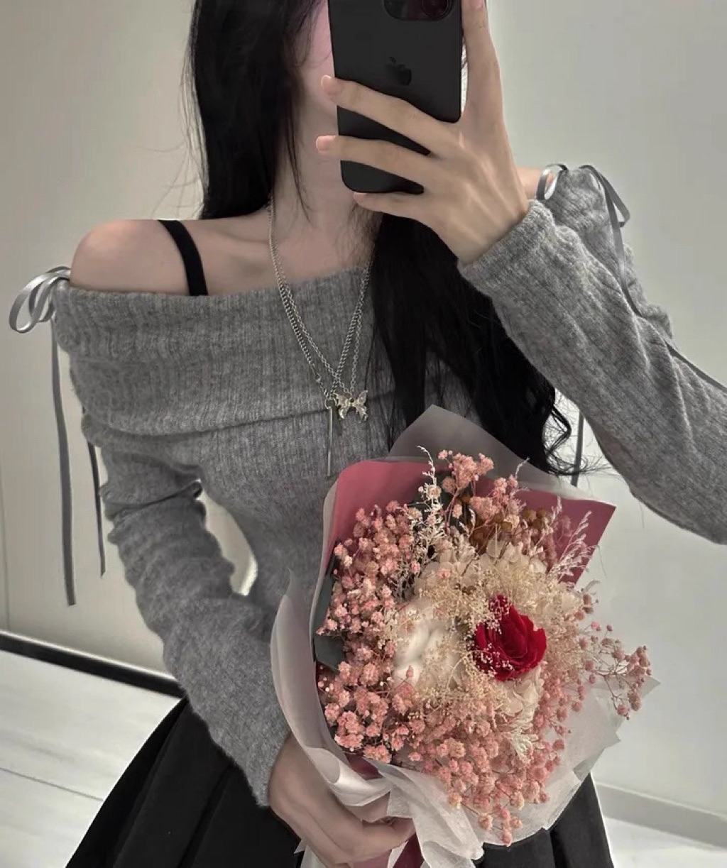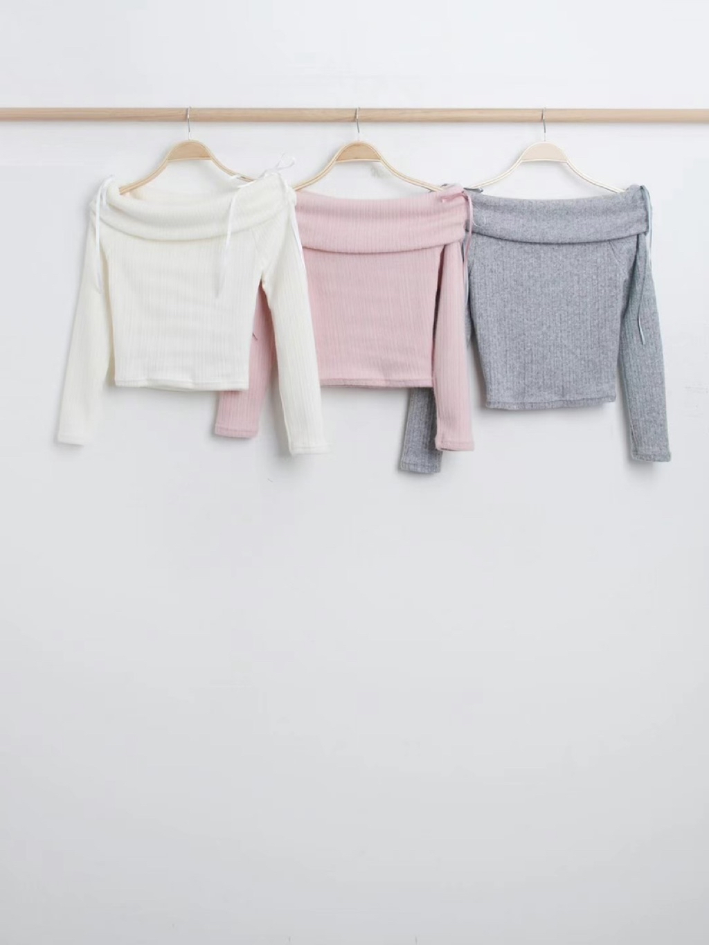MO🇰🇷 韓國東大門代購 正韓 韓國製 韓國代購 柔軟緞帶蝴蝶結一字領上衣 預購