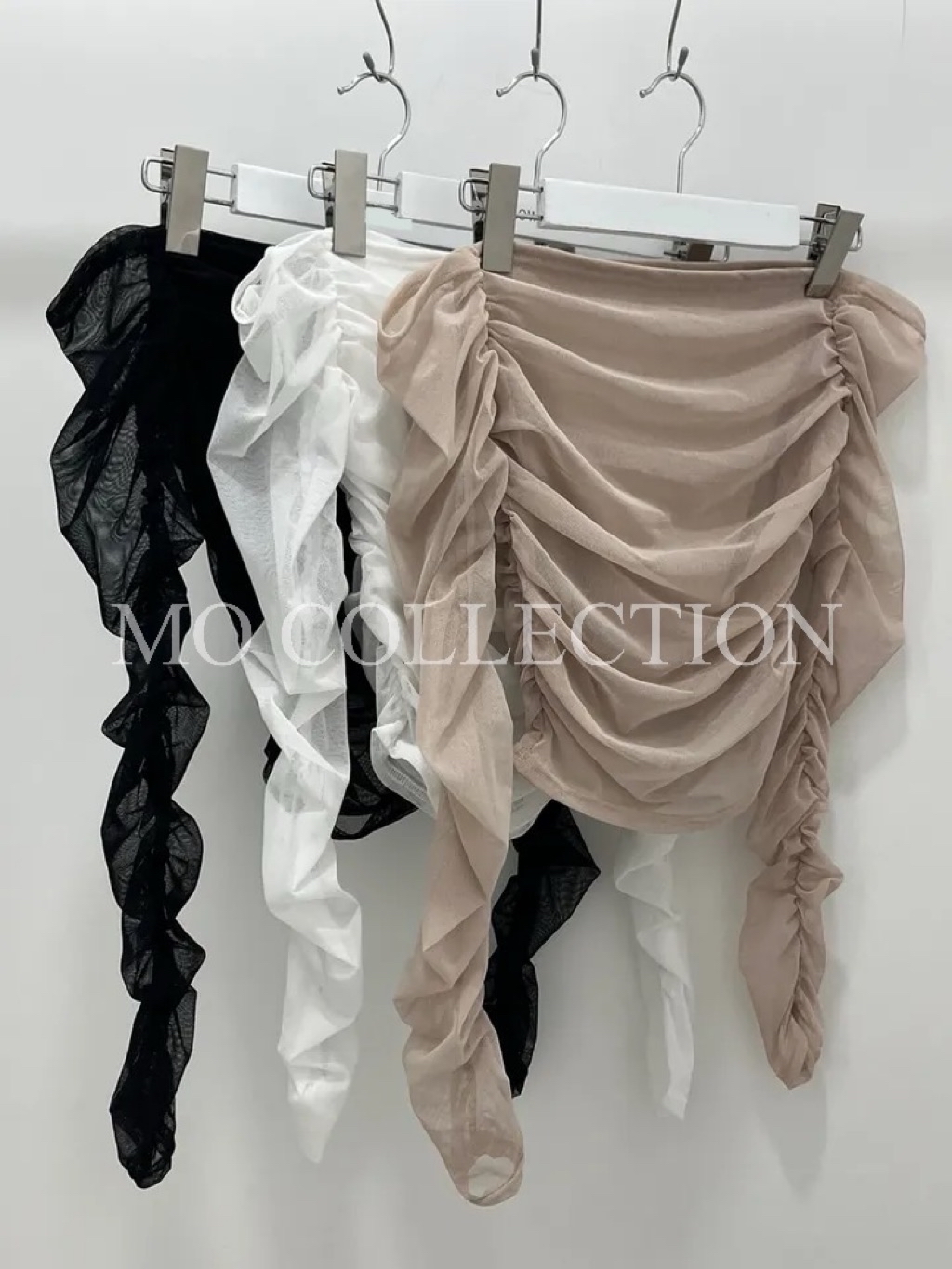 MO🇰🇷 韓國東大門代購 正韓 韓國製 韓國代購 網紗一字領皺皺長袖上衣 預購