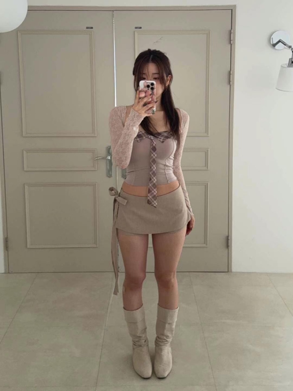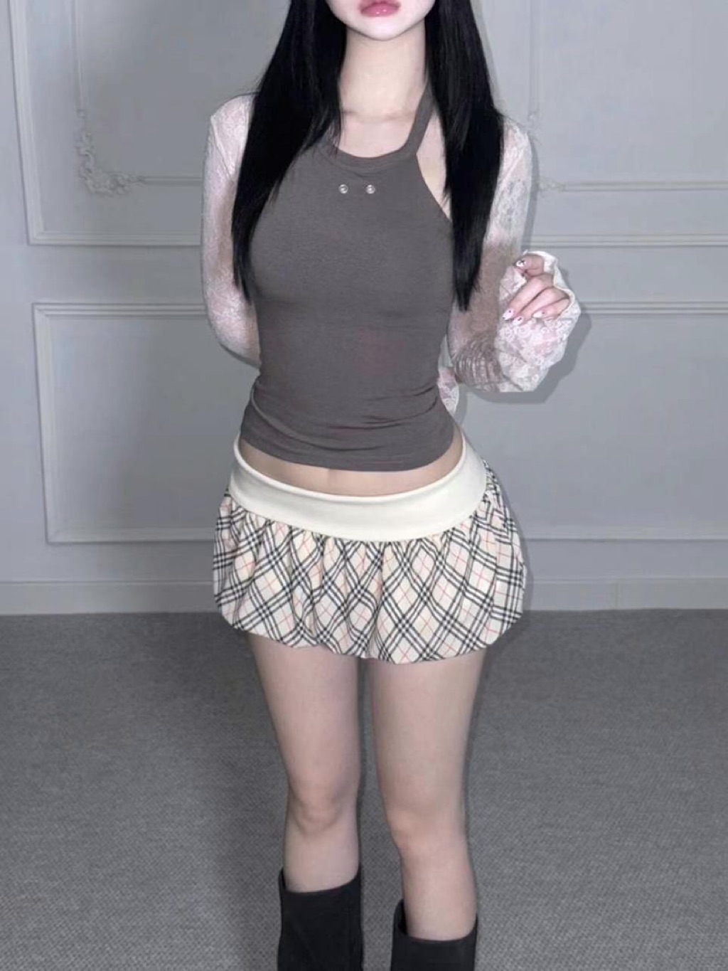 MO🇰🇷 韓國東大門代購 正韓 韓國製 韓國代購 格紋平口背心 透膚短罩衫 格紋短裙 套裝 預購