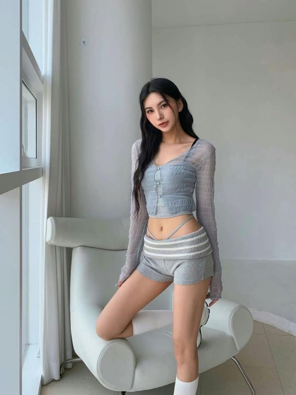 MO🇰🇷 韓國東大門代購 正韓 韓國製 韓國代購 皺皺透膚罩衫 反折條紋短褲 套裝 預購