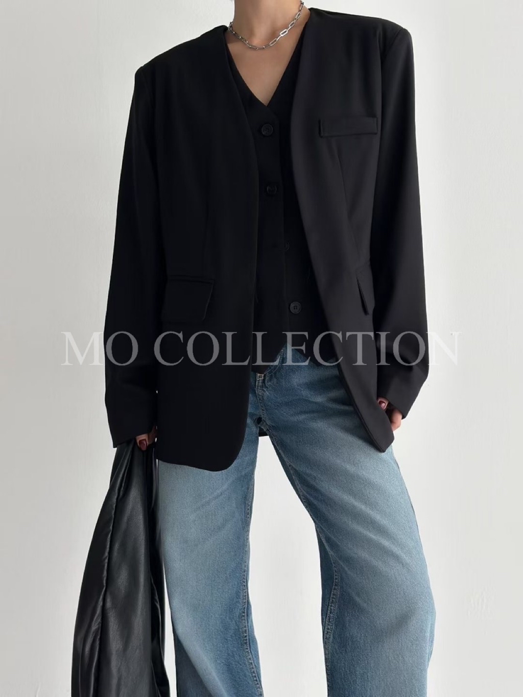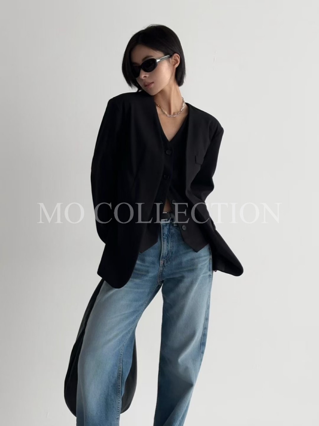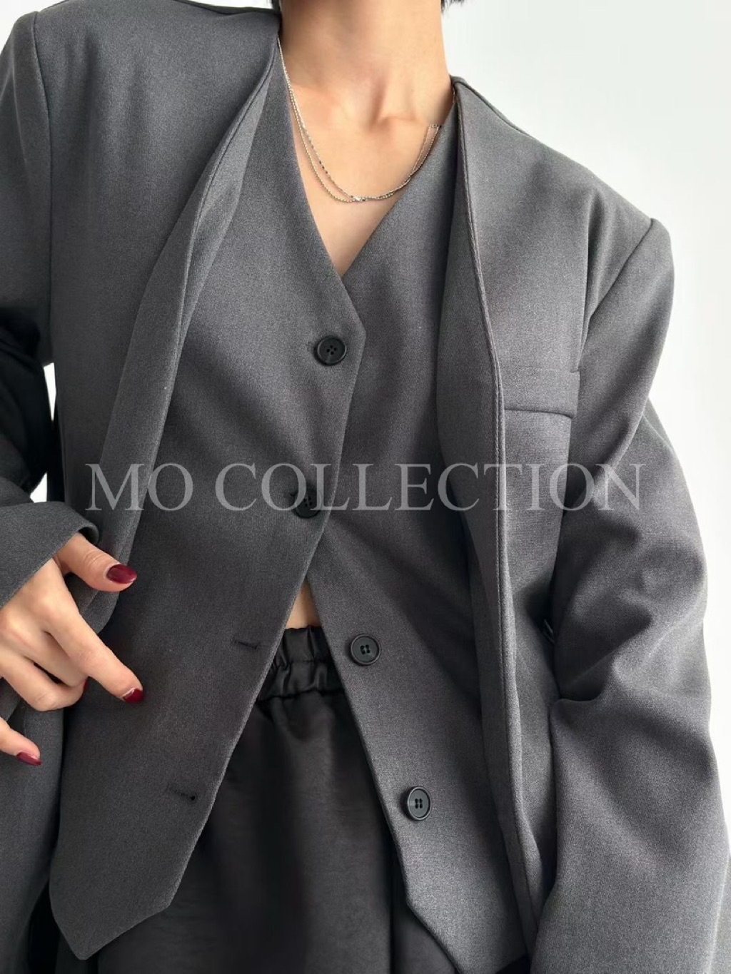 MO🇰🇷 韓國東大門代購 正韓 韓國製 韓國代購 假兩件無領西裝外套 預購
