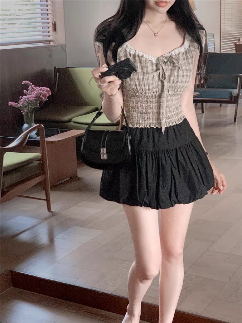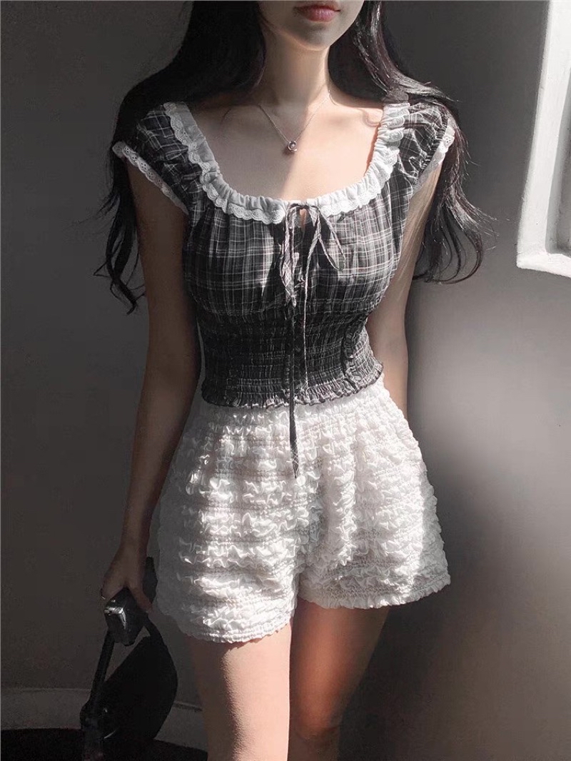 (現貨黑)MO🇰🇷 韓國東大門代購 韓國代購 蕾絲收腰上衣(可拉一字領)泡泡短褲 預購